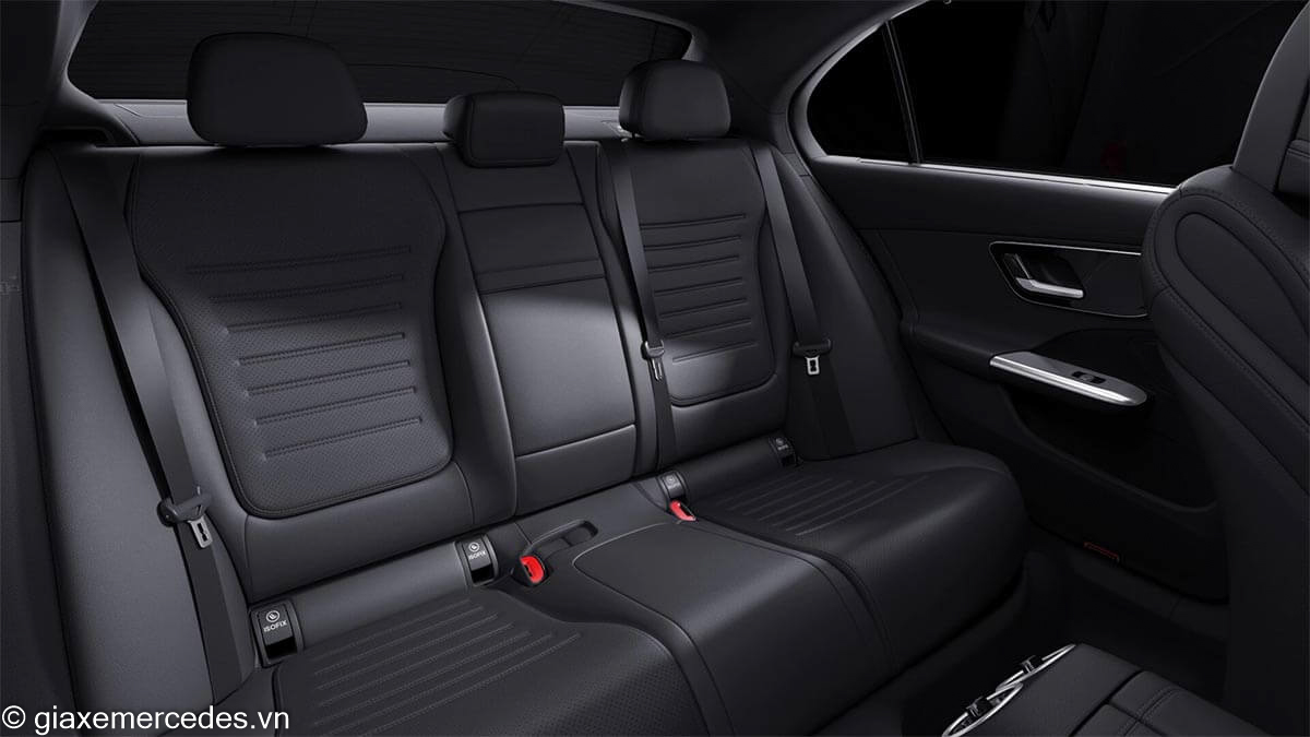 Khoang cabin của Mercedes-Benz C300 AMG 2022.C300 AMG 2022 có một số trang bị công nghệ tiên tiến như đế sạc điện thoại không dây, cổng sạc Type-C dưới bệ tỳ tay, ghế lái và ghế phụ thiết kế thể thao chỉnh điện đa hướng nhớ 3 vị trí, Vô-lăng 3 chấu đáy vát bọc da tích hợp lẫy chuyển số thể thao phía sau. Cần số cũng được đặt sau vô-lăng. Hệ thống âm thanh của bản lắp ráp là loại là loại Burmester 3D trong khi bản nhập khẩu là loa thường. Trần xe có cửa sổ trời toàn cảnh. Hàng ghế sau rộng rãi cho 3 người ngồi, trục dẫn động giữa xe nhô hơi cao.